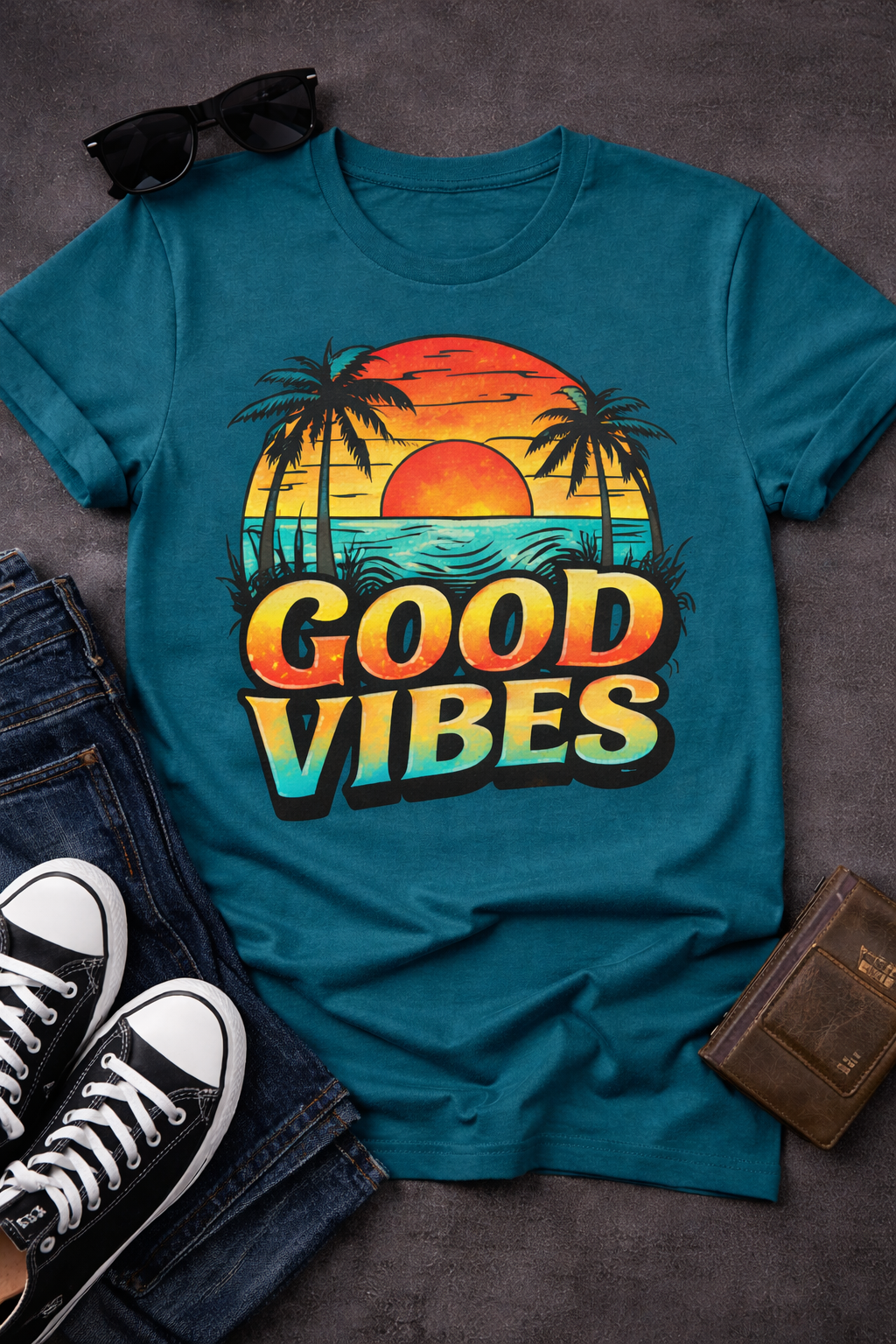 Stay stylish and positive with the Good Vibes Graphic Printed Men’s T-Shirt from Threadly. Designed for comfort and modern fashion, this T-shirt features a vibrant sunset and palm tree graphic that adds a cool, trendy vibe to your wardrobe.